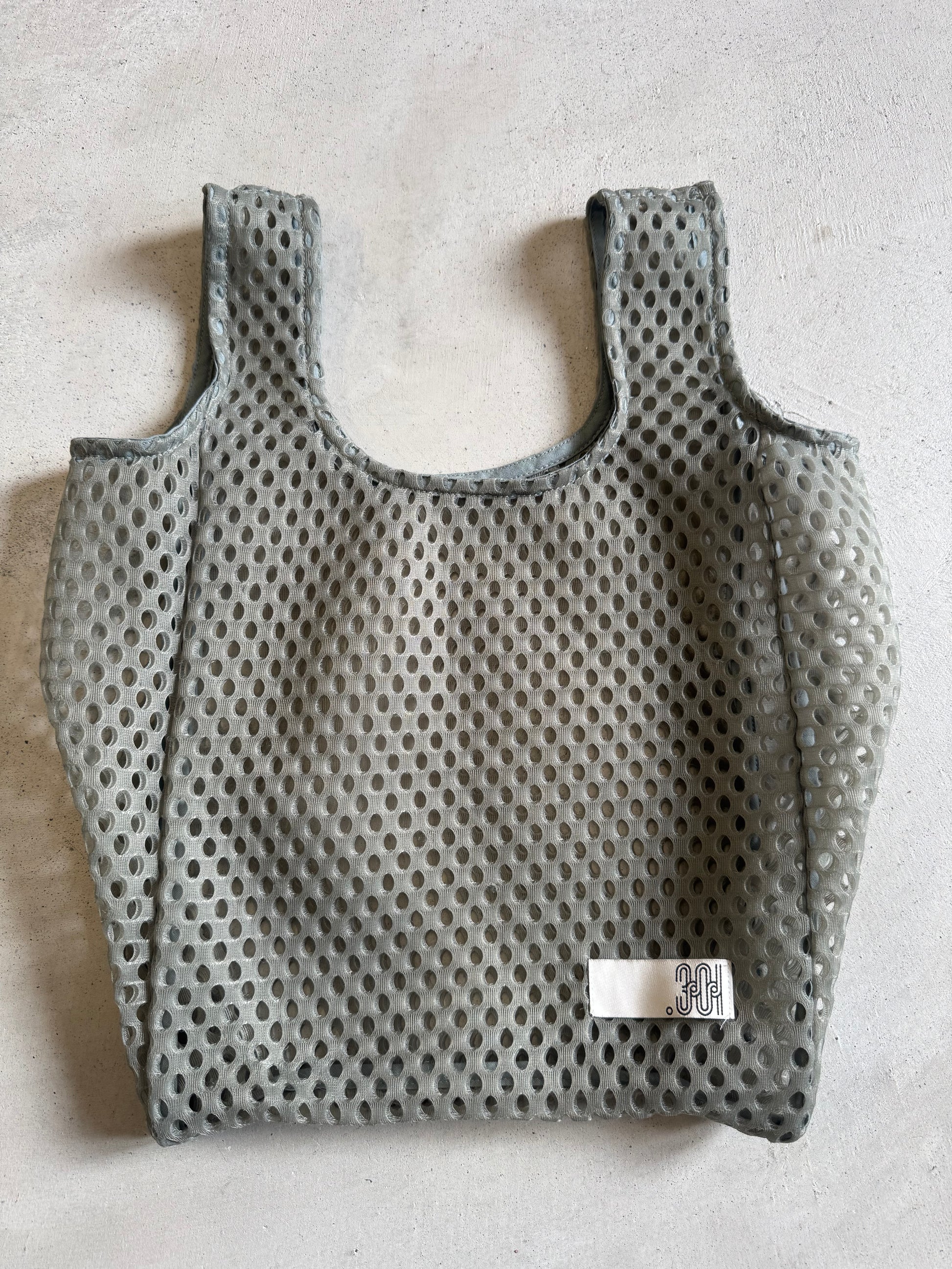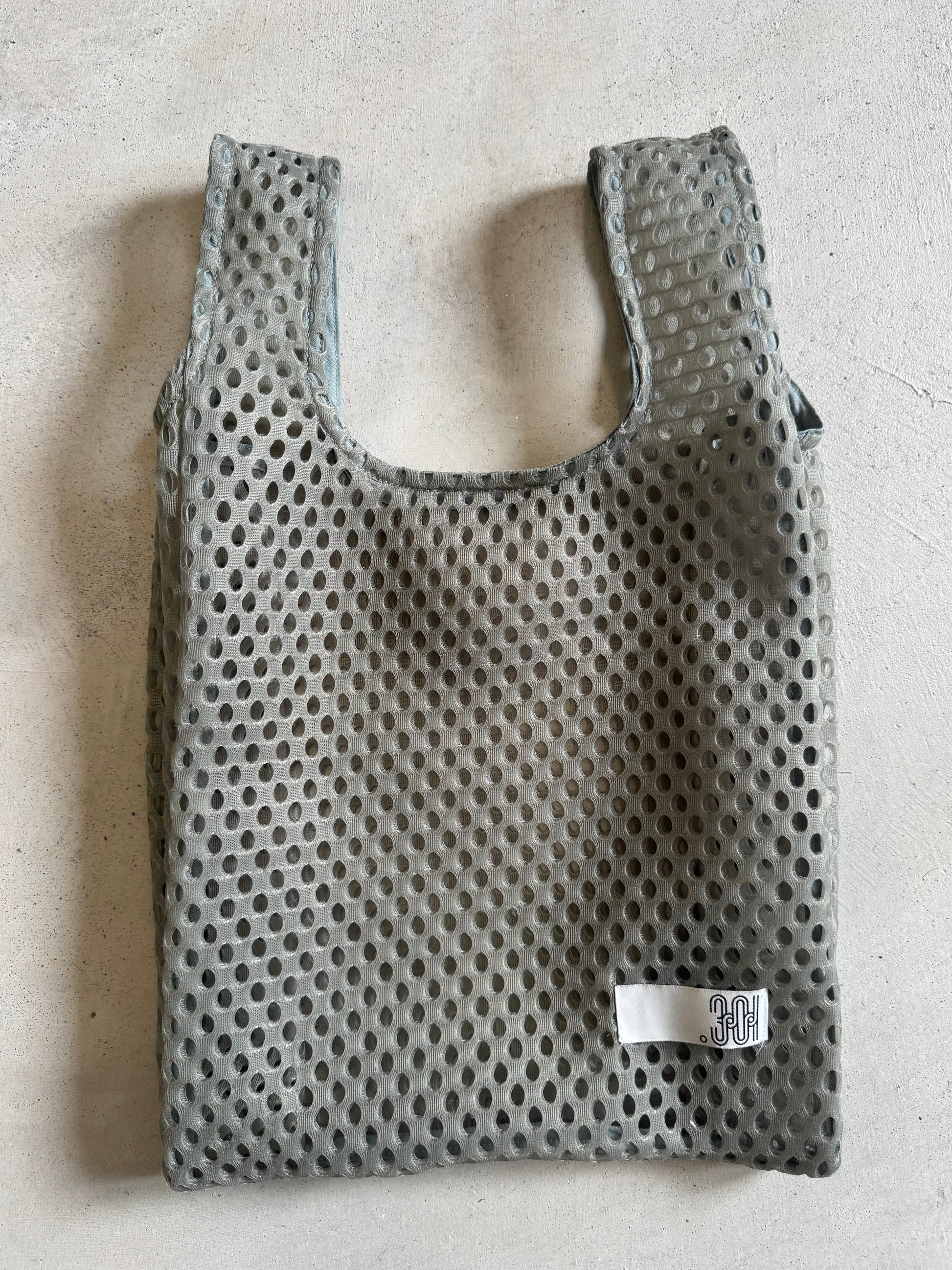 The SPESINA is a lightweight perforated synthetic mesh bag made from deadstock fabric.